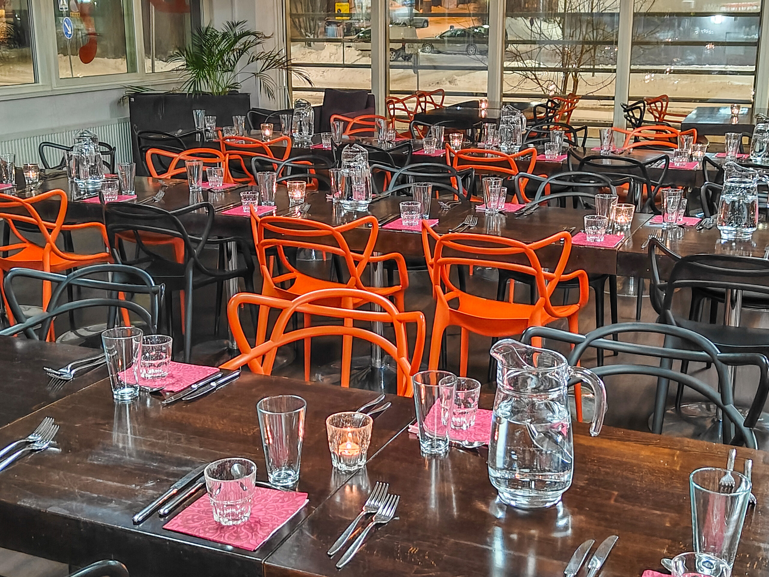 Our restaurant is equipped with a sound system. We’re happy to help with planning and organizing the program, and we can also arrange decorations and other event production services.