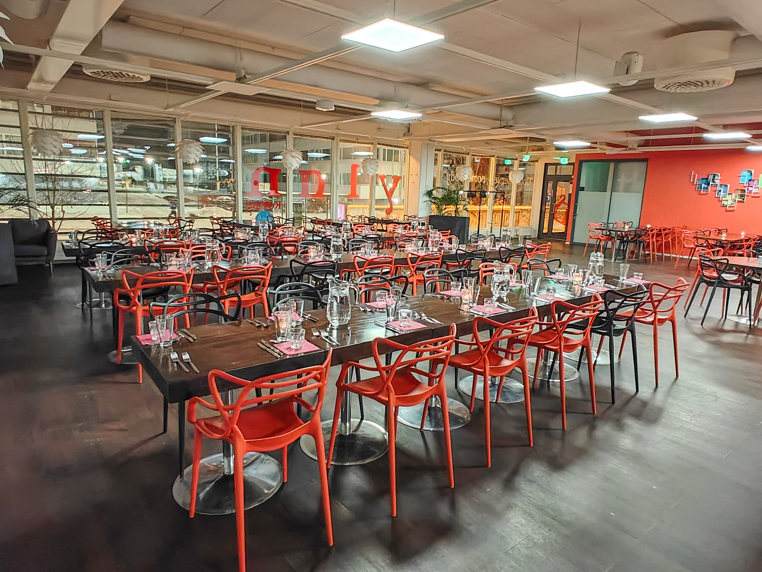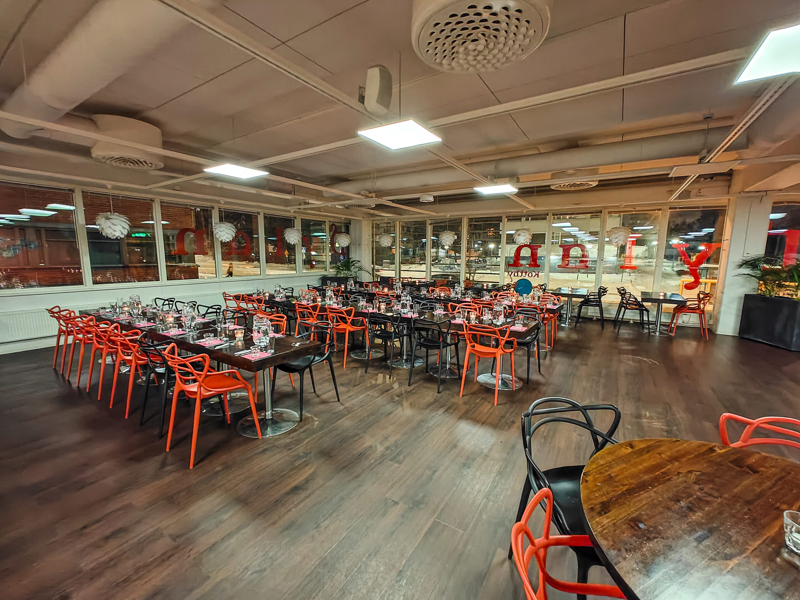 Located in Oulunkylä, right near Käpylä train station, Tuusulanväylä, and Musta Pekka, the restaurant can host 150 guests for a seated event or 200 for a cocktail reception. The venue also has two rentable meeting rooms (for 26 and 8 people), which can also be booked for evening events.
