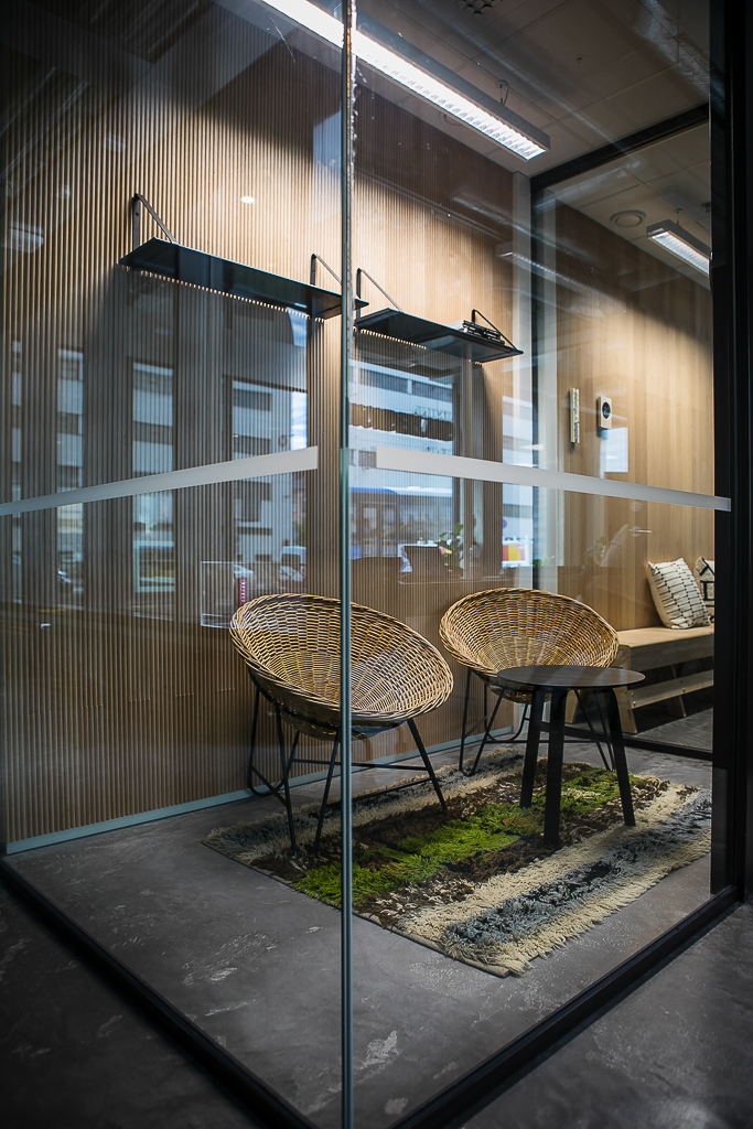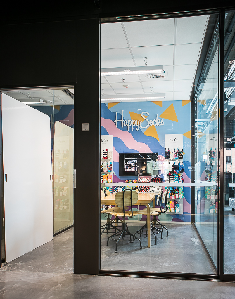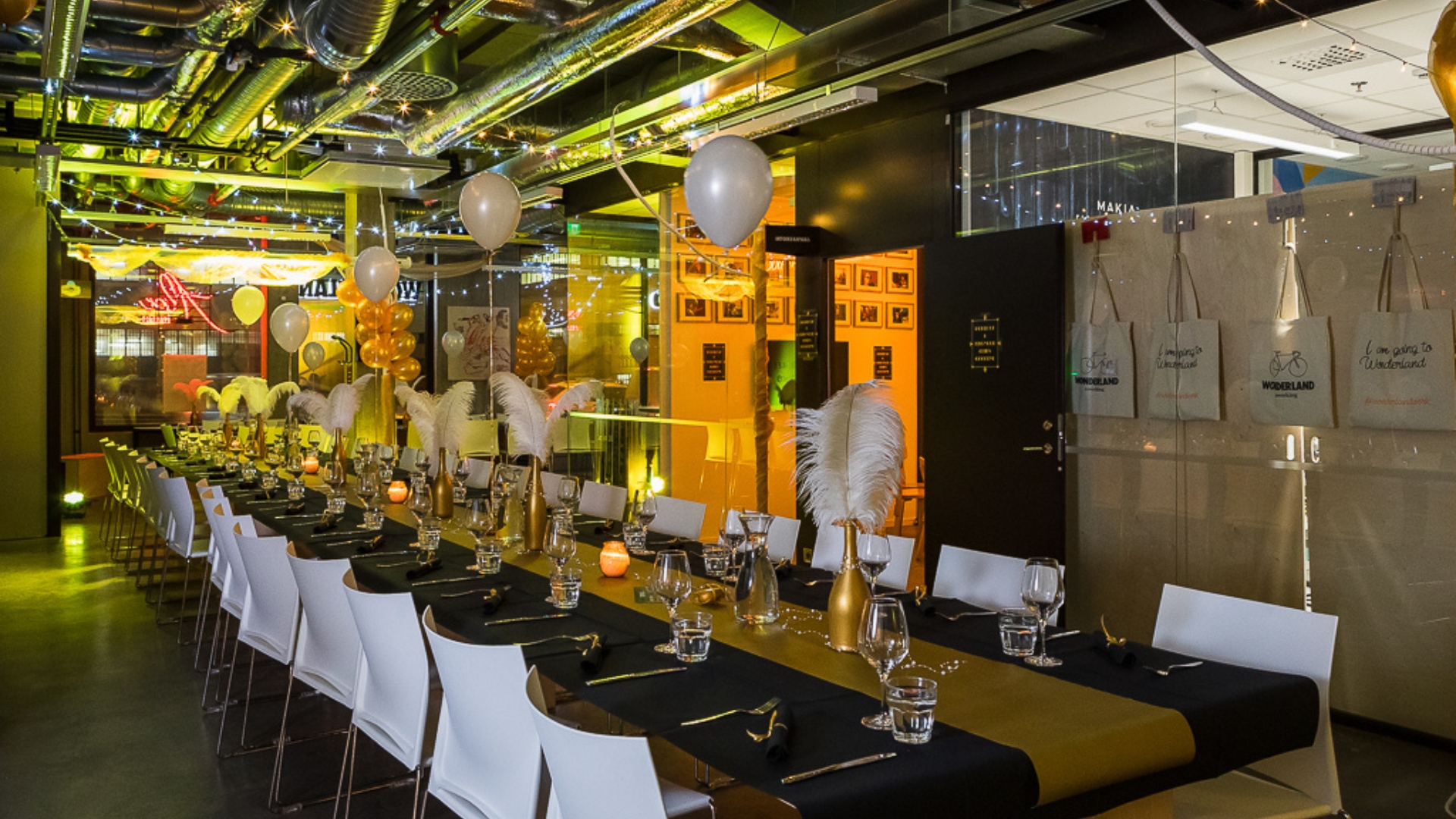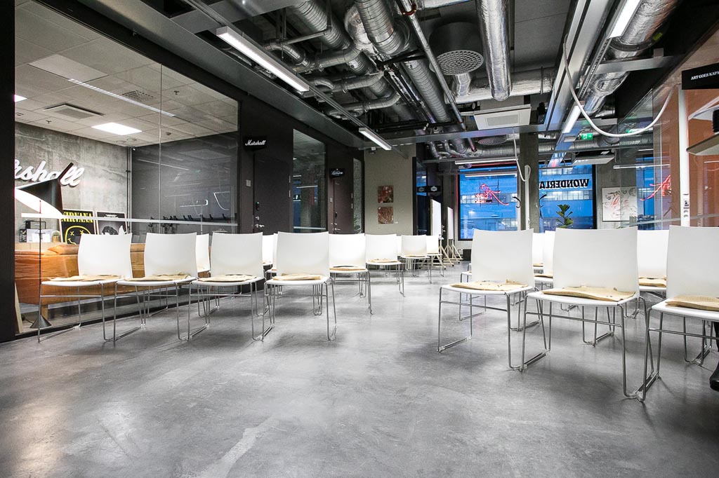 The Wonderland Playground is an area within the Wonderland coworking space consisting of eight meeting rooms and the shared space between them. The Playground can be rented for private events of up to 60–70 people. The area is L-shaped and includes the following meeting rooms: Marshall, Makia, Lanson, WO Room, Magnum Studio, Happy Socks, Lonkero, and Kyrö Distillery. Depending on the size, the meeting rooms can accommodate between 2 and 16 people.