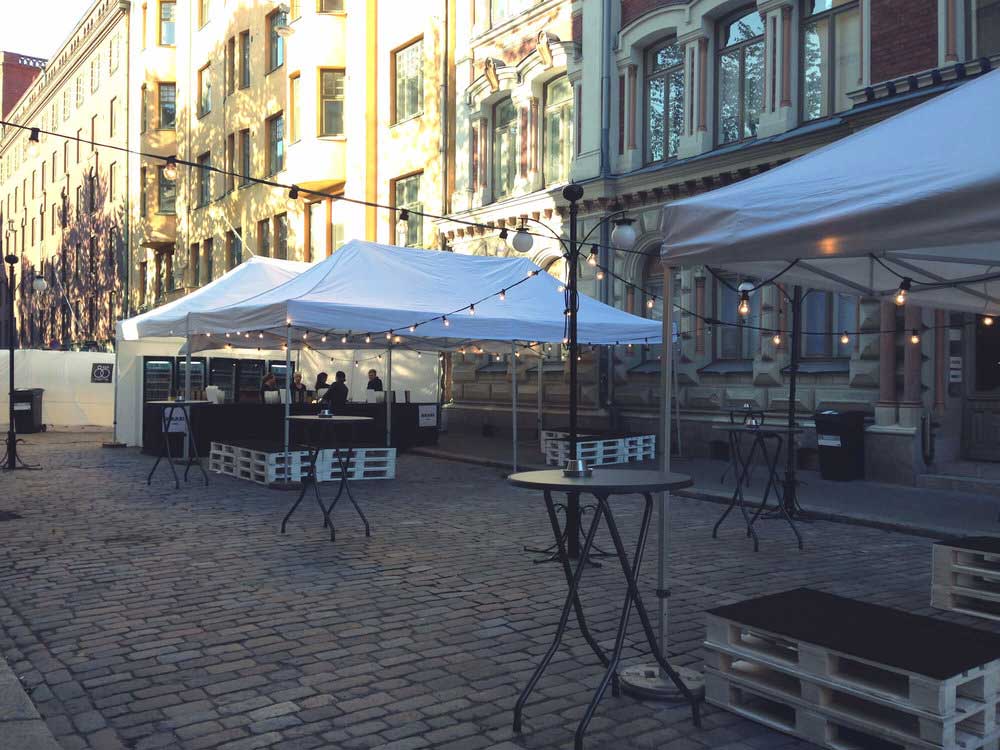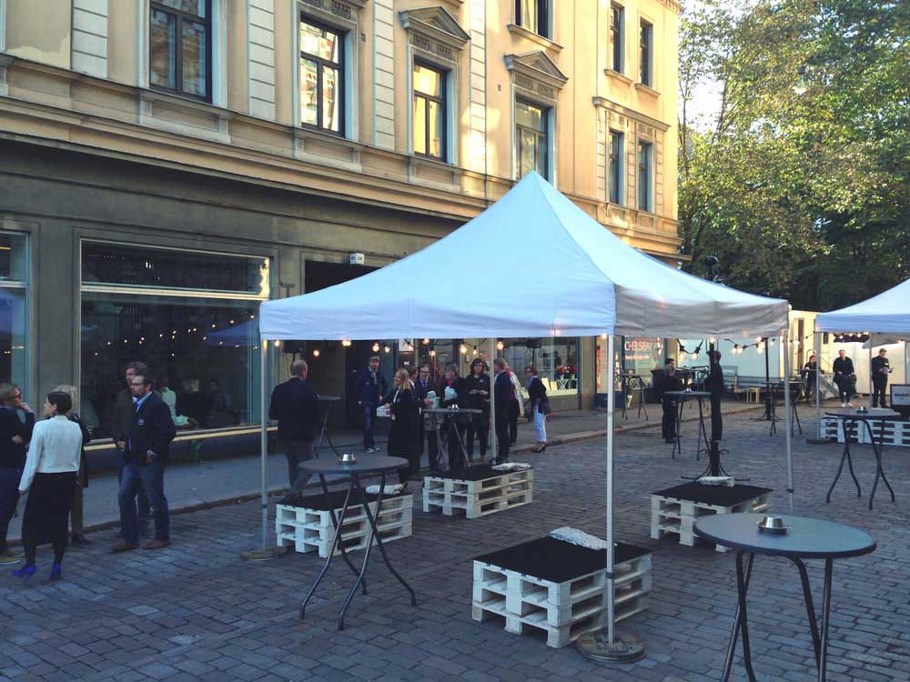 Järjestimme tuotannon Sek&Grey Oy:n 80-vuotisjuhliin. Suljimme osan Annankatua kokonaan jalankulkijoita ja autoilta, jonne rakensimme asiakkaalle omat yksityiset festarit. Alueelta löytyi Pågån tuotteilla rakennettu suljettu alue kutsuvieraille, teltat, karnevaalivalot, lavoista rakennettu oleskeluteltta, baari laitteineen, juomineen ja baarimikkoineen sekä DJ-lava ja katos. Hoidimme yhteistyössä asiakkaan kanssa tarvittavat luvat ja viranomaisyhteistyön, kuten pelastussuunnitelman.