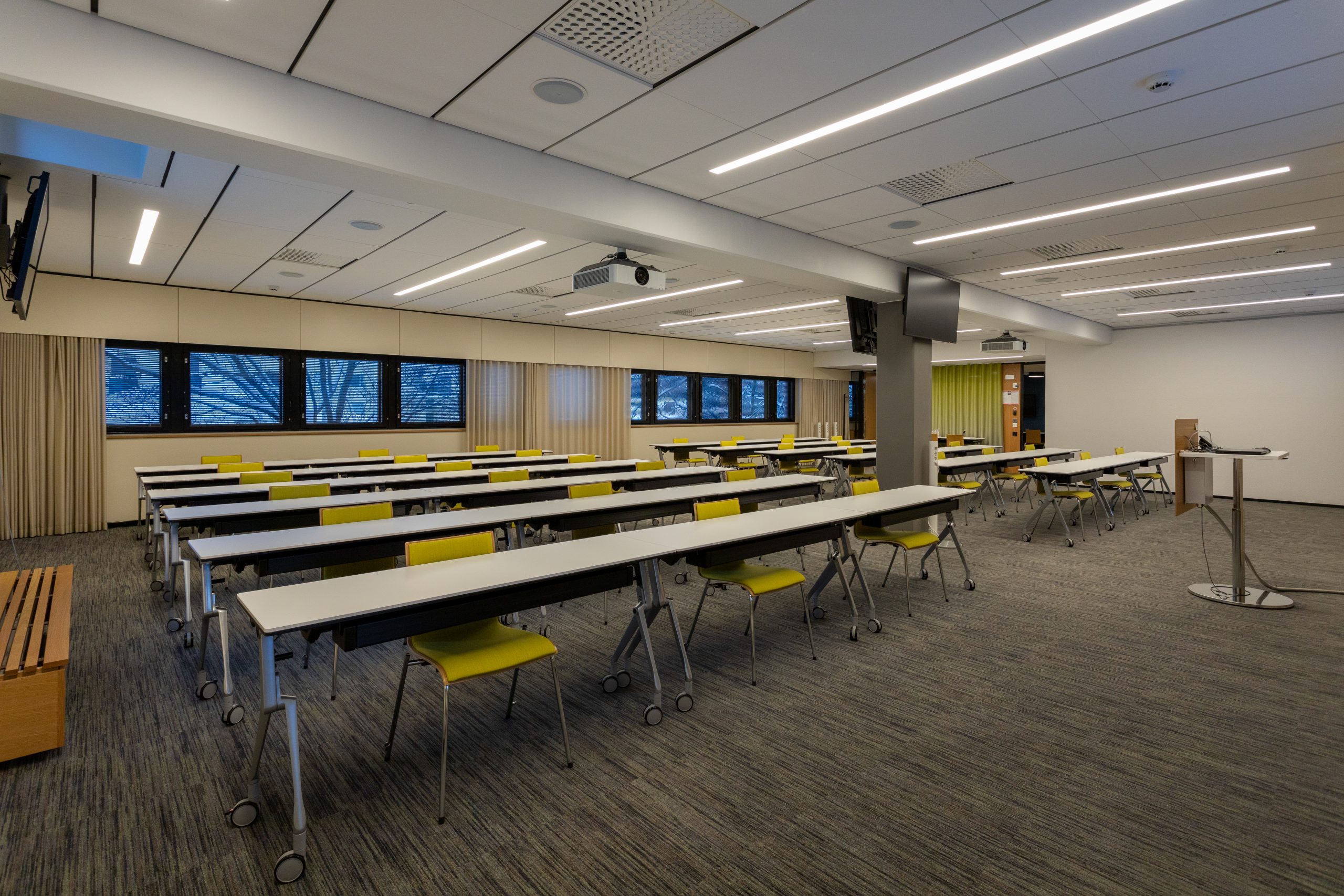 Kokoustila A 3.23 Karhu on avara ja luonnonvaloa tulviva tila, jonka ikkunoista on näkymät kolmeen suuntaan. Monipuolisesti erilaisiin tilaisuuksiin soveltuvan tilan puitteet mahdollistavat kokousten, seminaarien sekä workshoppien järjestämisen – jopa 84 hengelle. Tilalla on oma aulatila, jonka näytölle on mahdollista heijastaa samat esitykset kuin kokoustilassa.